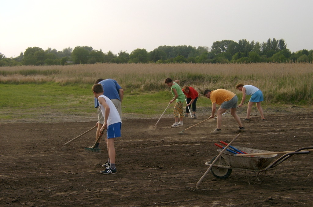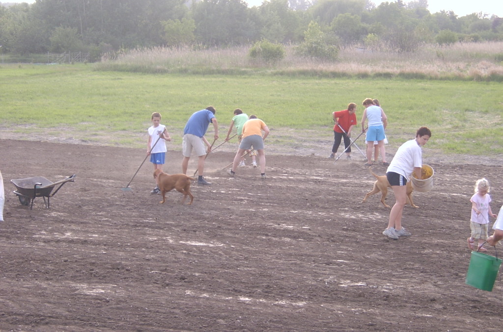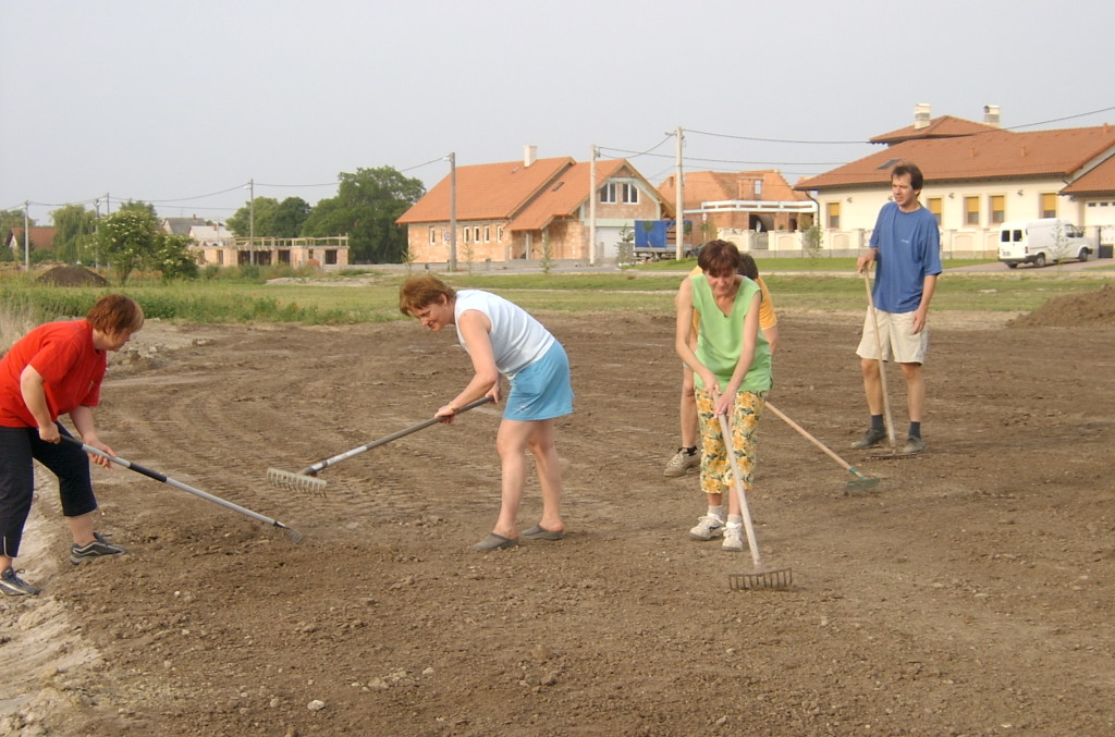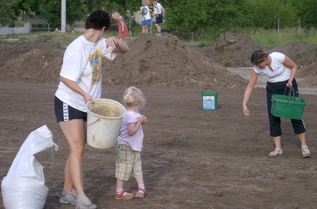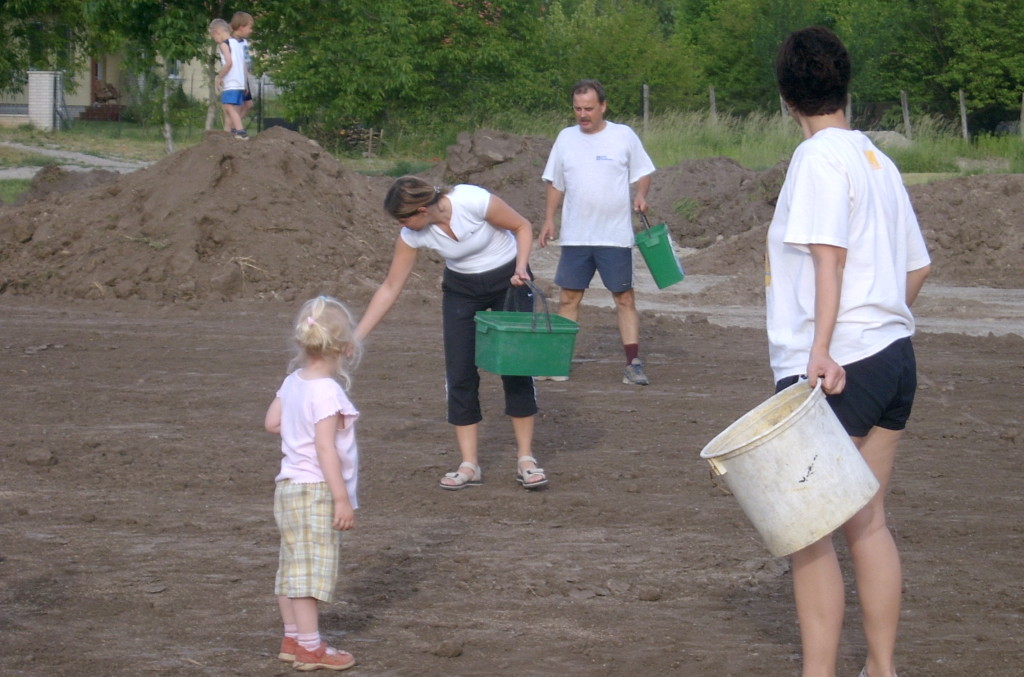 Az első közös munkák egyike volt a 2007 májusában szervezett akció, melynek során a futball pálya füvesítésére került sor. Kicsik és nagyok egyaránt gereblyét, talicskát, vagy vödröt ragadtak és aktívan kivették részüket a feladatokból.